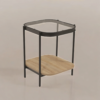 الخامة: سطح زجاجي شفاف – رف سفلي خشبي – هيكل معدني متين