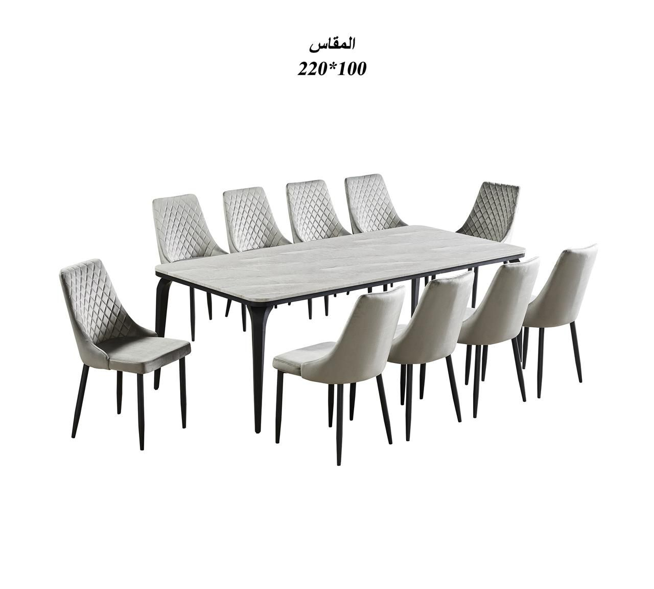 طاولة طعام بديل رخام 10+1 – أنيقة وعصرية – لون رصاصي