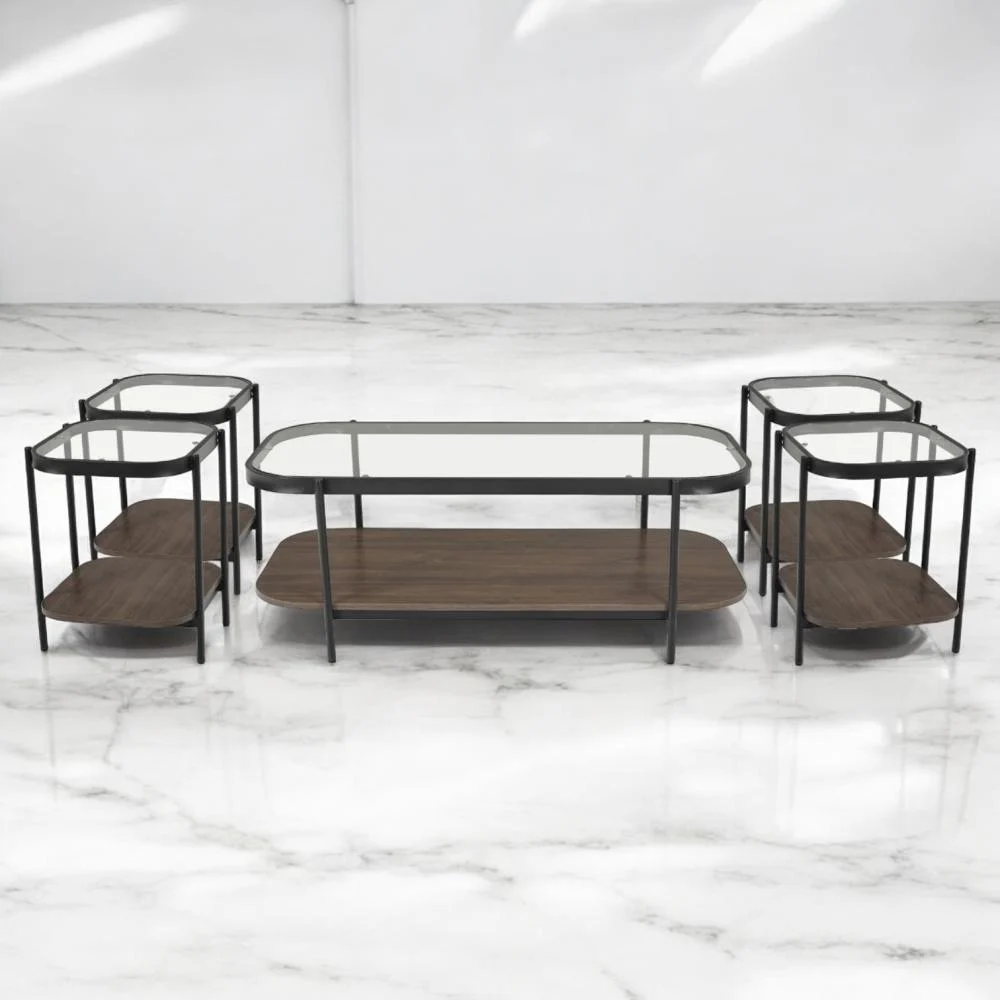 طقم طاولات شاى خشب مع زجاج 4 قطع+1 اللون بني غامق ر.س897.00 Save:ر.س299.00(25%)