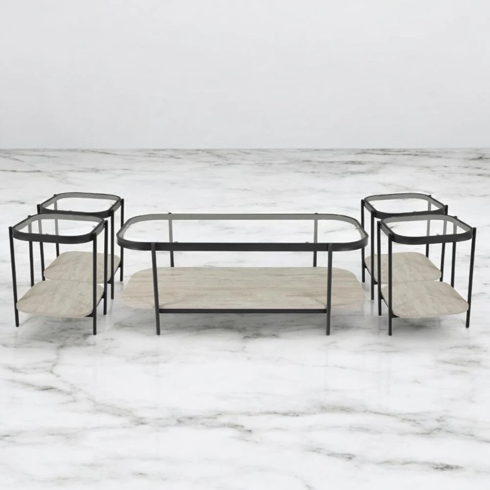 استمتع بمزيج رائع من الأناقة والوظيفية مع طقم طاولات الخدمة 4+1 بتصميمه الحديث الذي يضفي لمسة فاخرة على أي مساحة. يتميز الطقم بمستويين لزيادة المساحة التخزينية والاستخدام العملي، مما يجعله خيارًا رائعًا لغرف المعيشة، الصالات، الفنادق، والاستراحات.