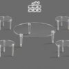 يتميز الطقم بخامات عالية الجودة تجمع بين الزجاج الشفاف والأكريليك الفاخر والإطار المعدني من الستانلس ستيل، مما يجعله متينًا وسهل التنظيف، مع تشطيب ميتاليك أنيق يضفي عليه لمسة عصرية.
