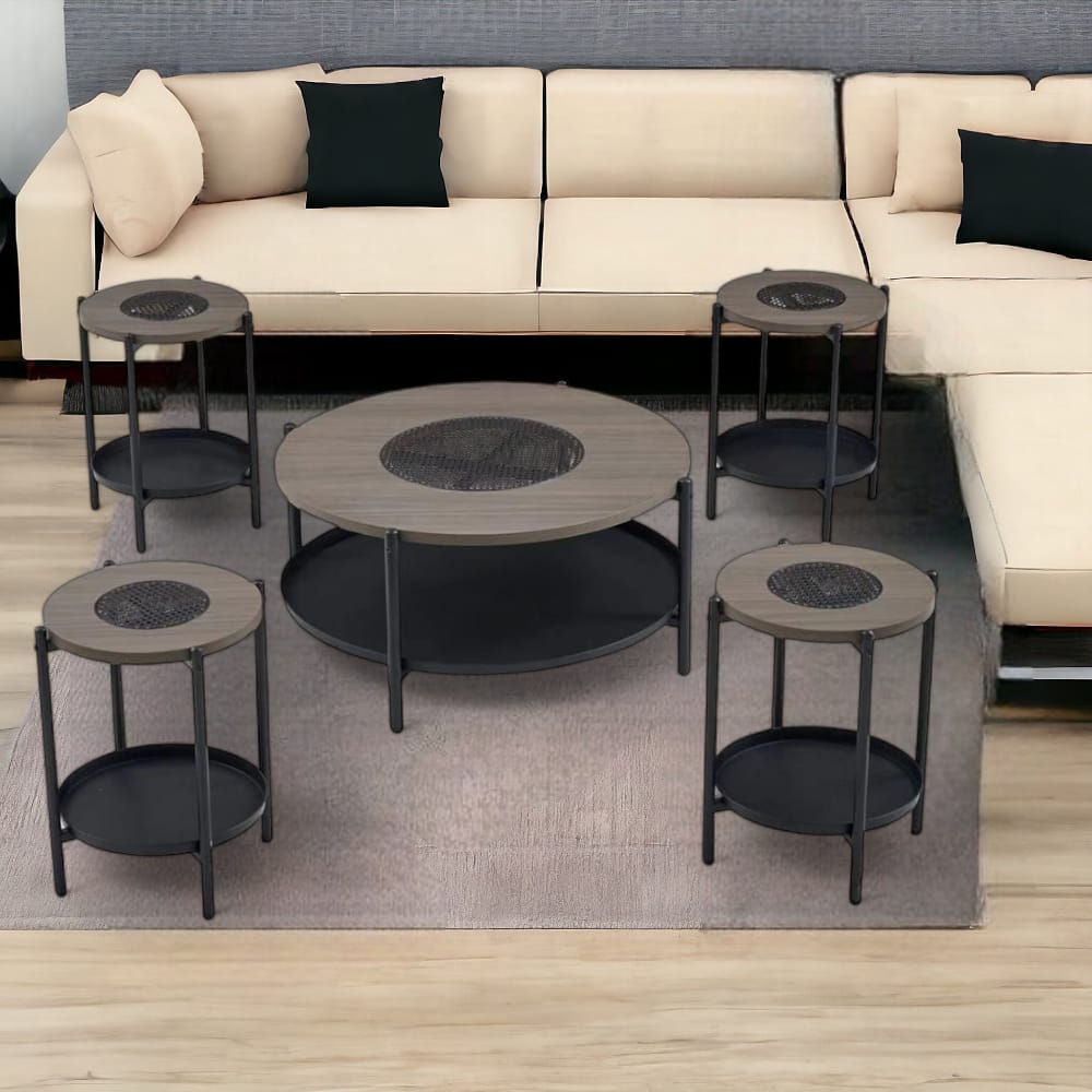 طقم طاولات شاي تصميم دائري فاخر من الخشب 4 قطع +1 لون رمادي غامق ر.س759.00 Save:ر.س253.00(25%)